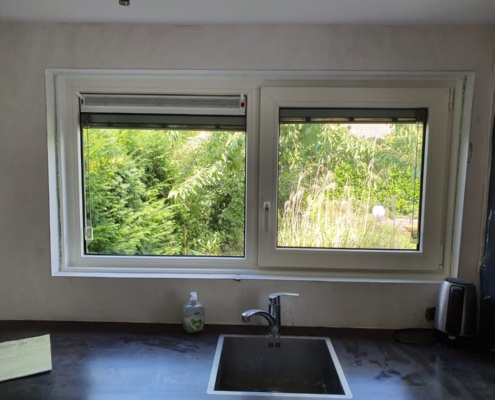 In Kampen hebben we een woning volledig voorzien van kunststof kozijnen. Bij diverse ramen hebben we lamellen tussen het glas, Screenline toegepast. Handig in de keuken, wel reguleren van licht en inkijk maar geen vuile en vette lamellen.